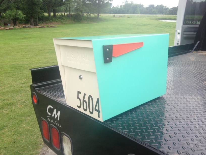 Instead of painting it we decided to go ahead and wrap the outside with vinyl, so we took it to our local sign guys, at Sign It! and picked out a color for our mailbox wrap, and a font for our numbers. And here is how it turned out… (I think its pretty nifty)