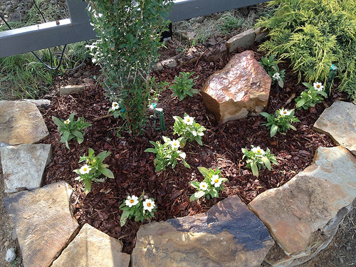 We then dug a trench and ran water and sprinklers to each flower bed: