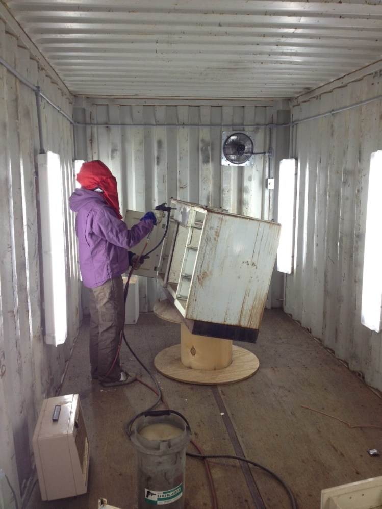 The walls were installed over a few nights, courtesy of Tyler and Kent Bright, and with a little help from our friend Ben Belden. Our first container now has the bones of a true house, and the final product is now becoming visible. The walls were installed for our closet, our shower, and the end wall where the original doors were removed.